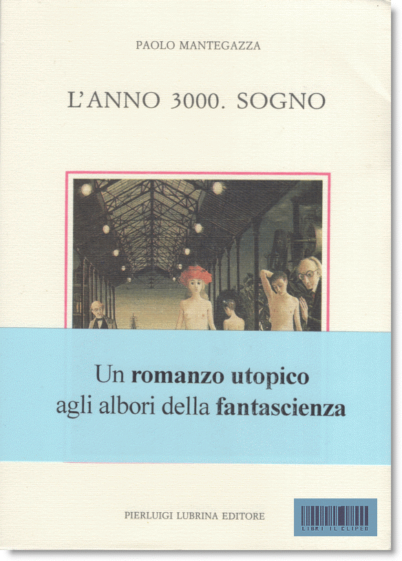 MANTEGAZZA. L'ANNO 3000. SOGNO. LUBRINA, 1988Paolo Mantegazza. L'ANNO 3000. SOGNO. Bergamo, P. Lubrina, aprile 1988. 169 p., 15x21 cm. Br. ed. fig. a colori con risvolti e copertina riportante il particolare di un dipinto di Paul Delvaux. Ottimo stato. # Questo singolare romanzo fantascientifico di Paolo Mantegazza (1831-1910), presentato come un "sogno", racconta le peregrinazioni di due giovani, Paolo e Maria, che vivono nell'anno 3000. In un mondo utopico, ma pure inquietante, immaginato dal noto fisiologo e scrittore nel lontano 1897. EUR 15,00 » Prenota |