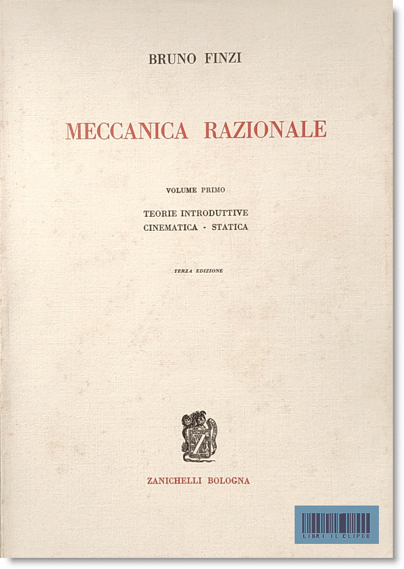 ![]() Bruno Finzi. MECCANICA RAZIONALE: VOLUME PRIMO: TEORIE INTRODUTTIVE, CINEMATICA, STATICA. Terza edizione. Bologna, Zanichelli, gennaio 1991. xvi-380 p., 17x24 cm. Br. ed. a colori. Ottimo stato. EUR 20,00 » Prenota |
