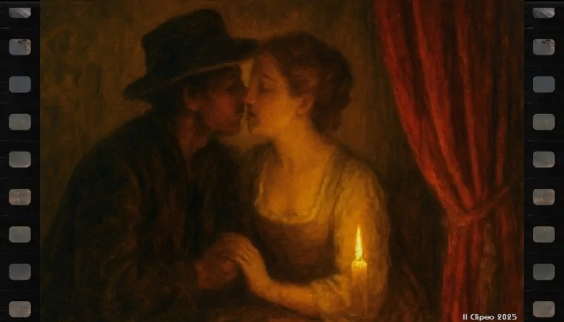 È nel luogo del compimento, illuminato dal fuoco della passione e della casa. Ritrova fiato, parole, e può finalmente rivolgersi a lei. Lei lo ascolta: è un incontro fatto di presenza reciproca, di parole vere.