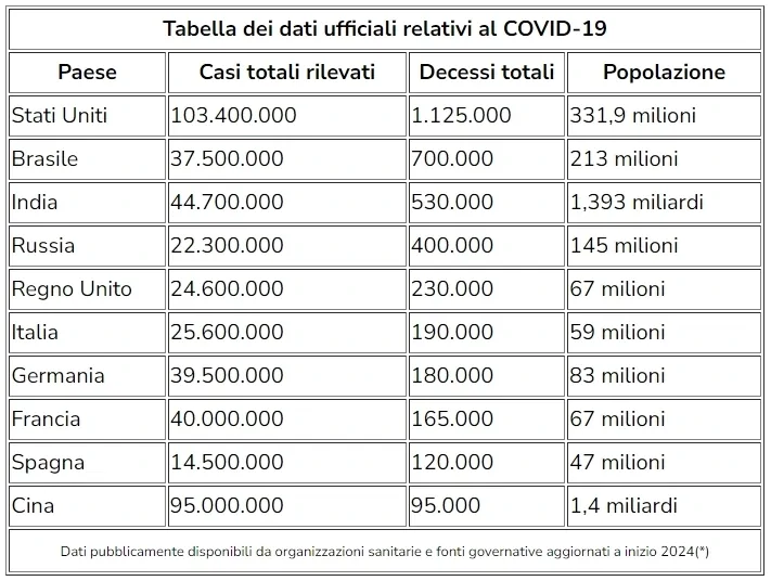 Il virus si è diffuso rapidamente in tutto il mondo, favorito dalla globalizzazione e dai frequenti spostamenti internazionali. Paesi come Italia, Stati Uniti e Brasile sono stati duramente colpiti nelle prime fasi della pandemia, con ondate successive che hanno continuato a mettere sotto pressione i sistemi sanitari.