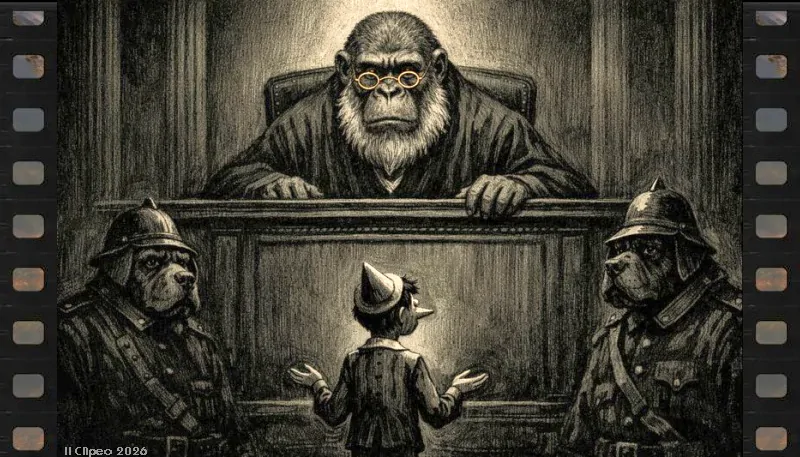 In questo capitolo, Collodi compie un gesto di lucidità spietata. Non descrive una giustizia corrotta nel senso romanzesco del termine; descrive qualcosa di peggio: una giustizia coerente, che funziona secondo una logica interna impeccabile.