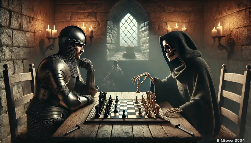 Trama e Significato: Il cavaliere Antonius Block gioca una partita a scacchi con la Morte, tentando di guadagnare tempo per cercare risposte sul senso della vita e la salvezza. Gli scacchi qui simboleggiano la lotta per la sopravvivenza, la sfida al destino e la ricerca di significato in un mondo incerto.